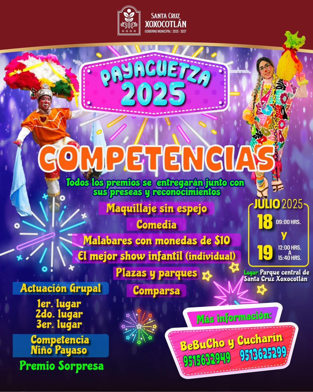 Santa Cruz Xoxocotlán, Oax. 13 de julio de 2025.- Santa Cruz Xoxocotlán será el escenario de la Payaguetza 2025, un evento único que combina la tradición oaxaqueña con el arte del clown.