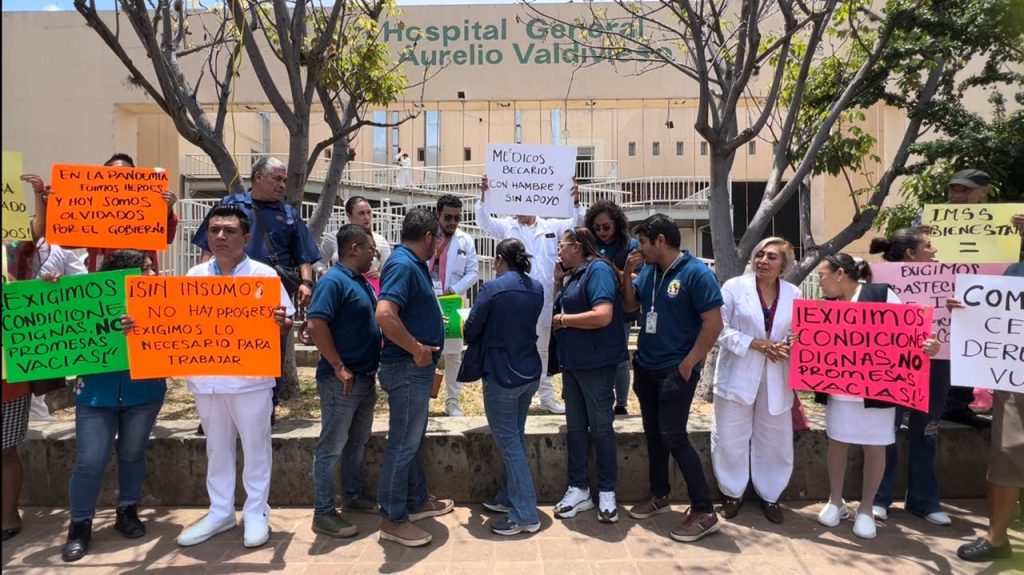 En esta ocasión, médicos residentes respaldados por trabajadores de la Subsección 07 de la Sección 35 del Sindicato Nacional de Trabajadores de Salud, del Hospital General “Dr. Aurelio Valdivieso” de Oaxaca, señalaron que les fueron suspendidas sus raciones de alimentos, luego de que el nosocomio prácticamente ya no cuente con insumos para la elaboración de las dietas alimenticias para pacientes y personal de la unidad hospitalaria.