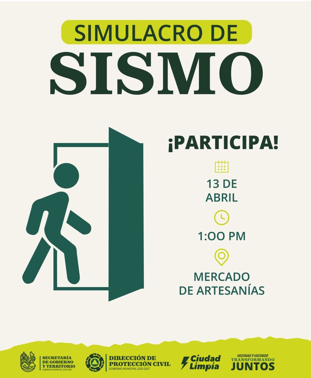 Durante el simulacro, personal capacitado guiará las acciones necesarias para asegurar un desarrollo ordenado, por lo que se exhorta a la ciudadanía a participar con responsabilidad y seguir las indicaciones correspondientes.