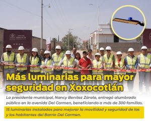 La presidenta municipal de Santa Cruz Xoxocotlán, Nancy Benítez Zárate, entregó 15 nuevas luminarias sobre la avenida Del Carmen, una...