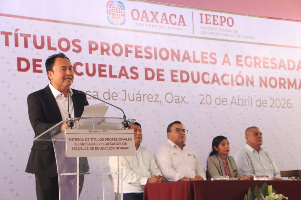 Oaxaca de Juárez, Oax. 20 de abril de 2026.- En el marco del trabajo coordinado con el magisterio oaxaqueño, el Instituto Estatal de Educación Pública de Oaxaca (IEEPO) entregó este lunes mil 342 títulos profesionales a docentes egresados de las escuelas normales del estado, correspondientes a las generaciones de 1998 a 2024.