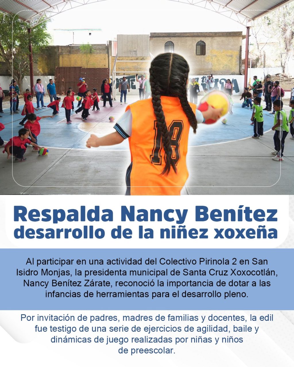 Este jueves, la presidenta municipal de Santa Cruz Xoxocotlán, Nancy Banítez Zárate participó de una actividad que demostró las habilidades adquiridas por las infancias para su sano desarrollo, durante talleres y actividades lúdicas.