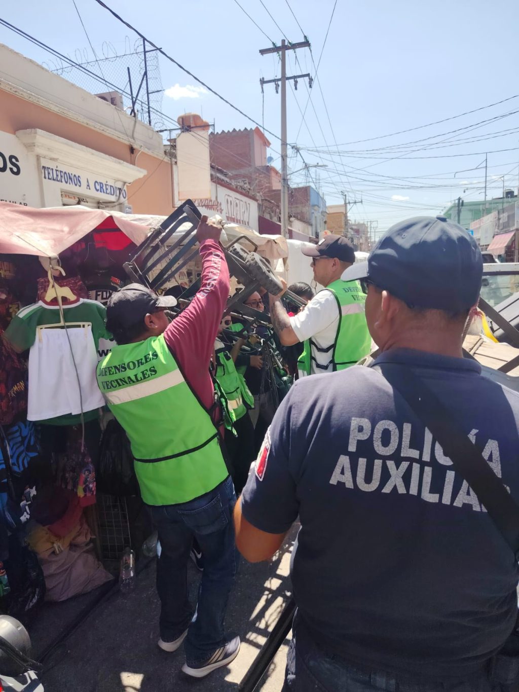 Durante la intervención, se realizó un recorrido de supervisión e inspección, procediendo al retiro y aseguramiento de objetos obstructivos y mercancía que impedían el libre tránsito, al encontrarse colocados de manera irregular sobre banquetas y el arroyo vehicular.