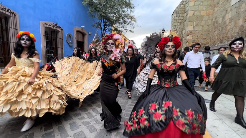 Con una magna comparsa alumnos del Colegio de Bachilleres del Estado de Oaxaca, demostraron que su creatividad no tiene límites. Durante un recorrido por las principales calles del centro histórico de capital oaxaqueña, lucieron sus disfraces, desde catrinas, hasta figuras míticas ¡Un desfile lleno de color y tradición!